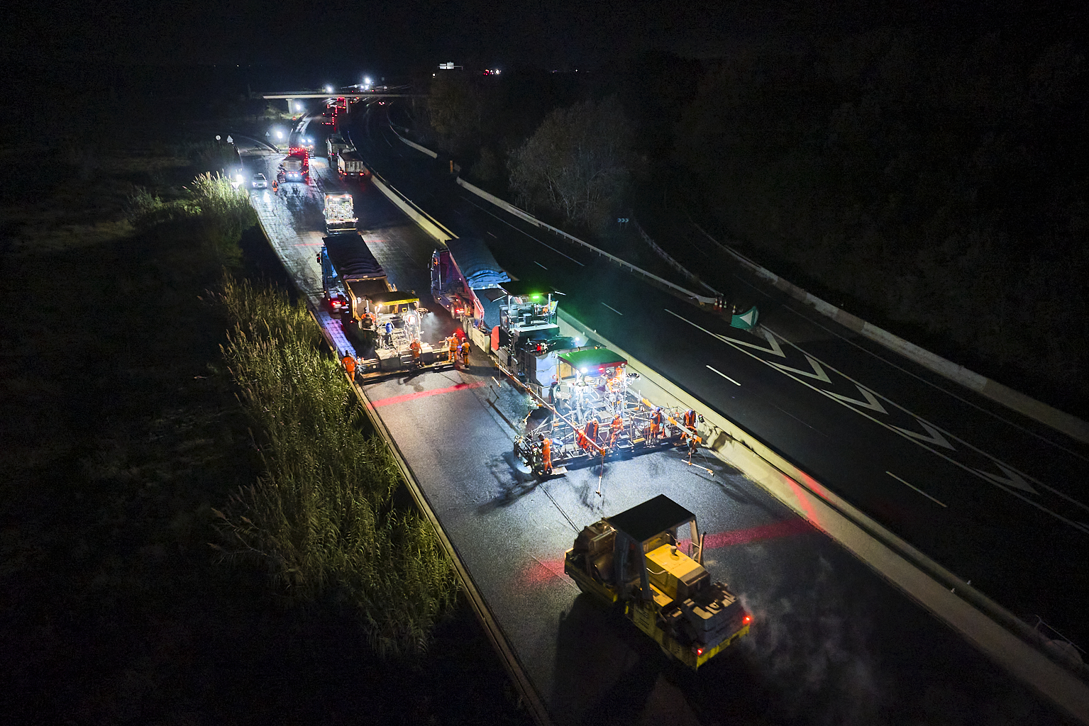 Dans le cadre de sa politique d’entretien et de maintenance de l’infrastructure, VINCI Autoroutes vient de terminer la campagne de rénovation des chaussées sur l’autoroute A54 entre l’échangeur de Saint-Martin-de-Crau et la bifurcation A7/A54, au niveau de Salon-de-Provence. Lancé le 6 octobre 2025 et achevé le 12 décembre dernier, ce chantier a permis de rénover 48 km de chaussées. Réalisée exclusivement de nuit pour limiter la gêne à la circulation, cette opération représente un investissement de 11,5 millions d’euros, entièrement financé par VINCI Autoroutes. Elle permet aujourd’hui d’offrir aux conducteurs des conditions de circulation plus sûres et un meilleur confort de conduite sur cet axe très fréquenté.